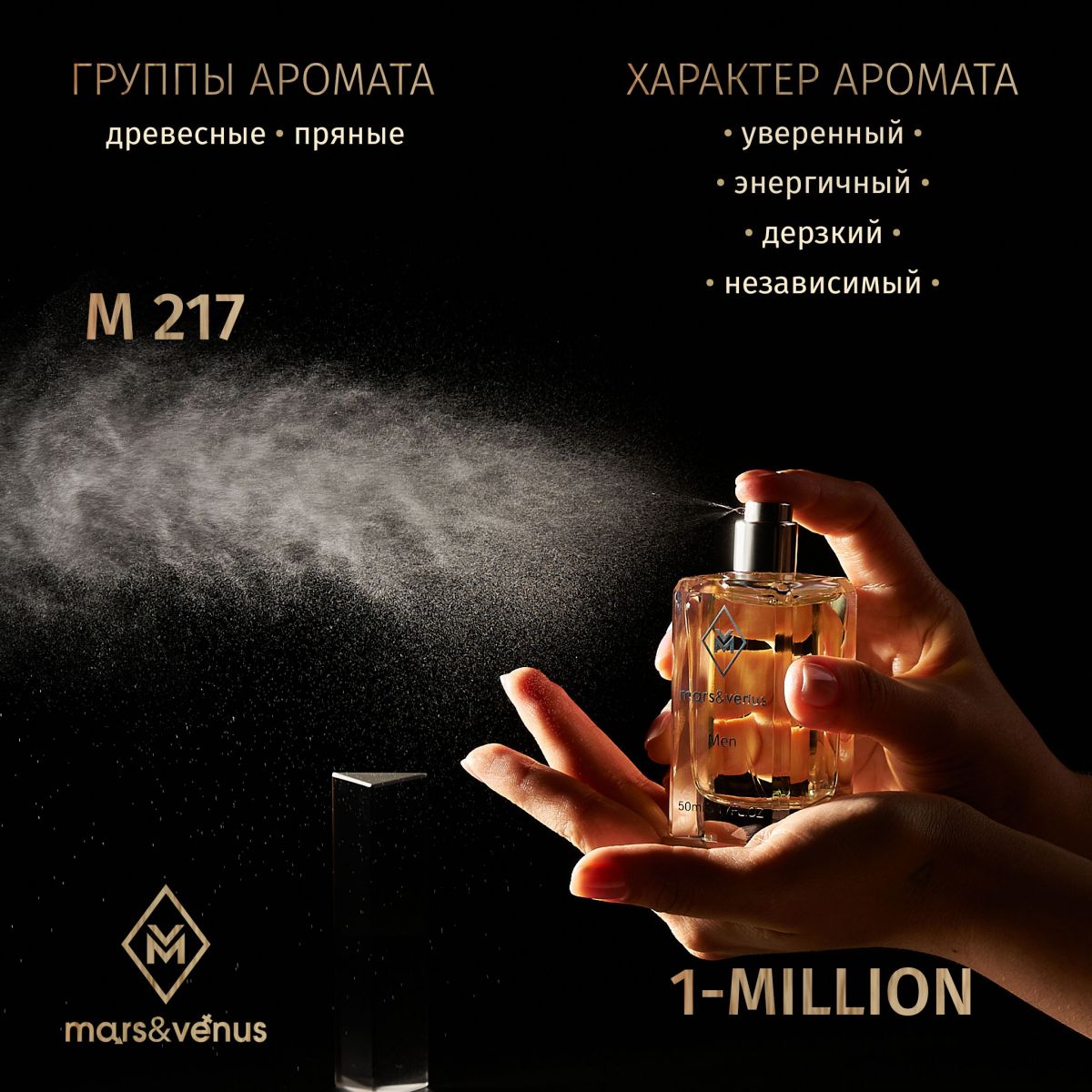 Парфюмированная вода Mars-Venus M 217 1-Million – аромат для элегантных и экстравагантных мужчин с характером, которые знают чего хотят от жизни. Это чудесная смесь, в которой много слоев и измерений, что делает этот парфюм очень запоминающимся и комплиментарным.