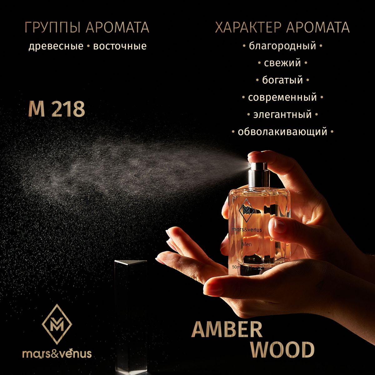 Изысканный букет аромата Mars-Venus M 218 Amber Wood раскрывается как великолепное творение, словно сказочное путешествие в мир неповторимых древесно-амбровых ароматических переживаний. Его композиция открывается игривыми нотами спелого яблока, пряными акцентами белого перца и кардамона, а также ароматическим дыханием лаванды. Затем в этом ароматном путешествии раскрываются возвышенные древесно-пудровые ноты оттеняющие свежесть лаванды и добавляющие гармонично-изысканный штрих. В базе горячие волны амброво-древесных нот переплетаются с пачули, создавая завершающий аккорд, который оставляет за собой волшебный шлейфовый след.