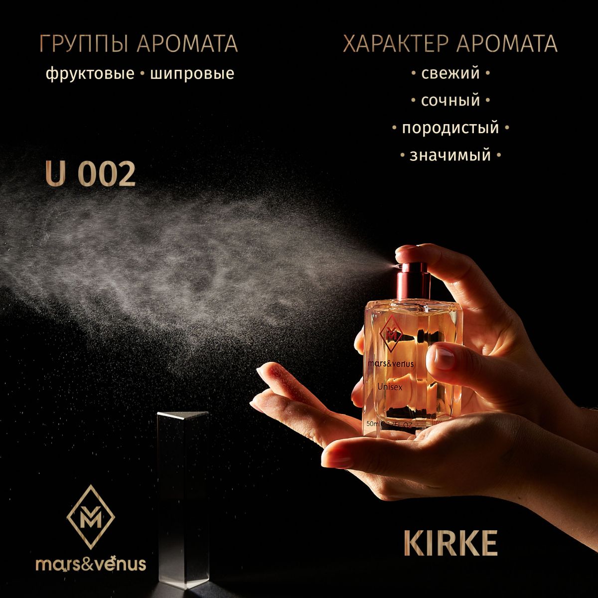 Mars-Venus U 002 Kirke – унисекс парфюм, приносящий непередаваемые моменты блаженства. Этот стимулирующий аромат, сочетающий в себе свежие фруктовые ноты с чувственными цветочными и древесными нотами, идеально подходит как для мужчин, так и для женщин.