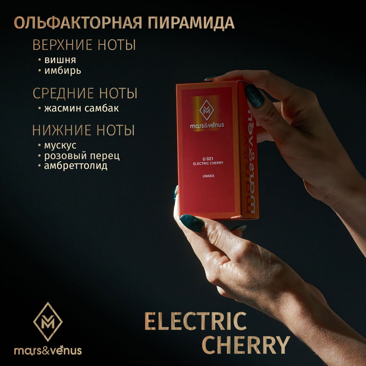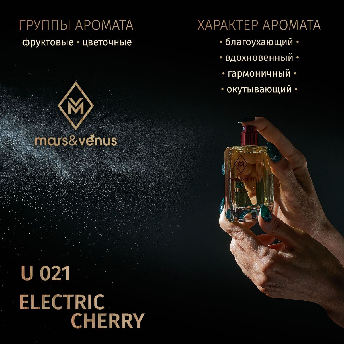 Фруктово-цветочная композиция Mars-Venus U 021 Electric Cherry так и искрится сочной головокружительной радостью и флиртом, переливаясь игривыми нотами.