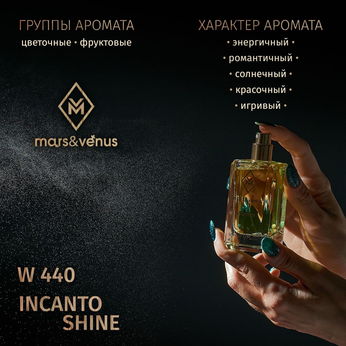 Парфюмированная вода W 440 Mars-Venus Incanto Shine – это волшебная эссенция, в которой таинственные ноты сияют, словно лучи солнца, проникающие сквозь листья зеленых тропических джунглей, лаская каждое мгновение вашего дня.